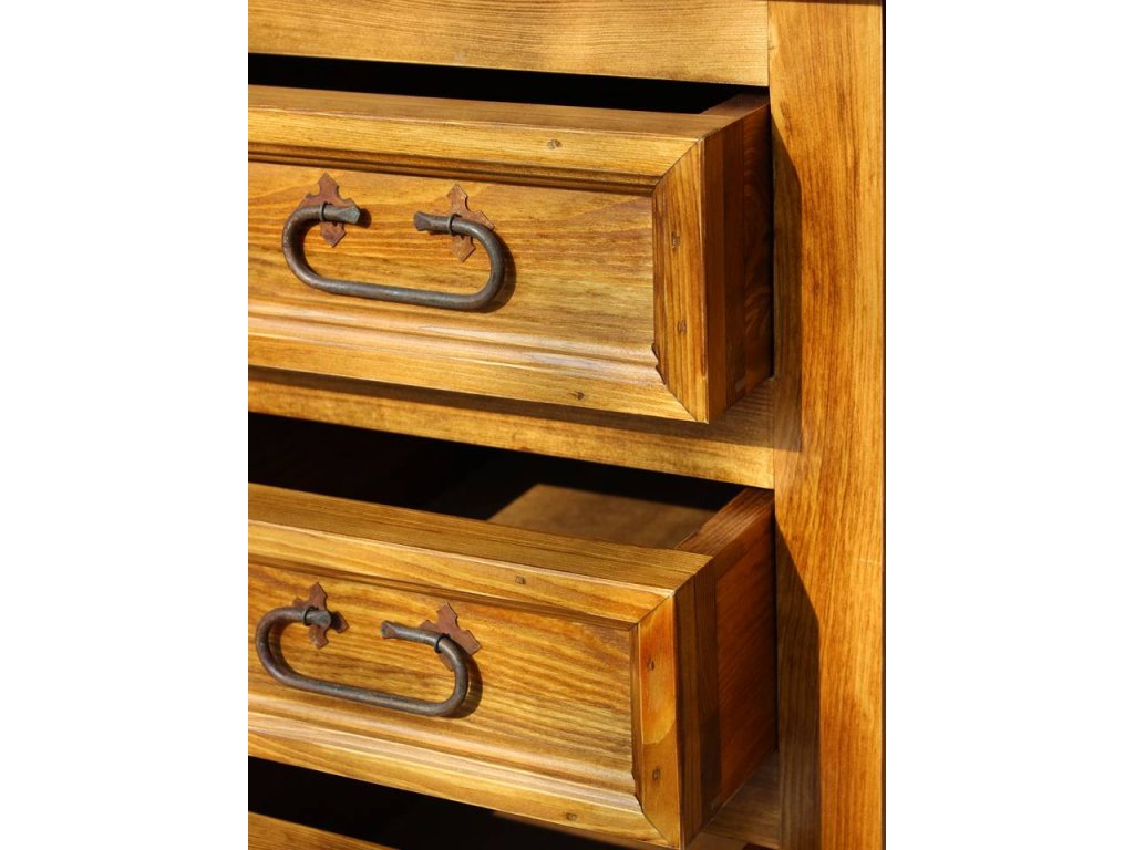 Kolekce MEXICANA nabízí kvalitní celomasivní nábytek, který je vyroben z 100% masivního dřeva, pouze dna šuplíků a záda skříní tvoří dřevěná dýha. Stylovou podobu tomuto nábytku dodávají retro úchyty a stejně tak i závěsy skříní a komod, které jsou účelově zrezivělé či zkorodované, což vyvolává dojem romantického venkova.