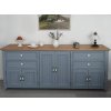 Masivní psací stůl PROVENCE je stůl vyrobený z masivního bukového dřeva, které je ošetřeno akrylovou barvou v šedomodrém odstínu, a z masivního dubového dřeva (horní deska), které je ošetřeno lakem. Díky spojení těchto dvou druhů masivního dřeva získal masivní stůl jedinečný vzhled, který zdokonalí Vaši ložnici i obývací pokoj.
