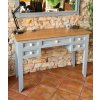 Masivní psací stůl PROVENCE je vyroben z masivního bukového dřeva a ošetřen akrylovou barvou v šedomodrém odstínu. Vrchní deska je vyrobená z masivního dubového dřeva a ošetřena lakem.