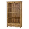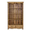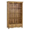 Retro knihovna WESTERN 12 je vyrobena z borovicového masivu vysoké kvality. Zadní část knihovny je rovněž vyrobená z masivního dřeva. Skládá se ze 3 polic, pod nimiž je praktický šuplík se stylovými starozlatými úchyty. Vrchní části komody dominuje originální klenba.
