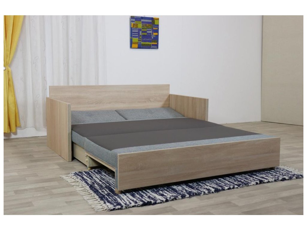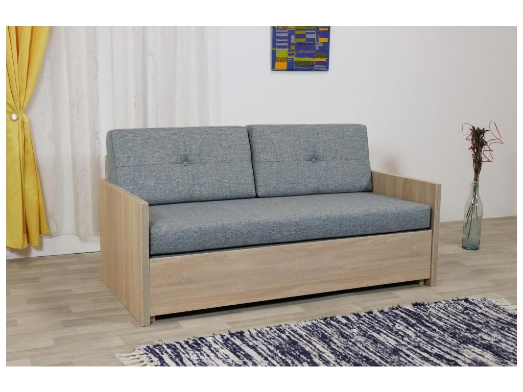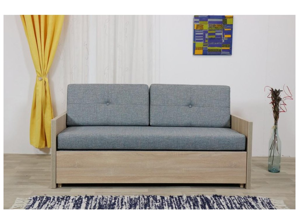 Rozkládací pohovka NELA s úložným prostorem a opěradlovým polštářem. Praktické rozkládání “hlavou ke zdi”, vhodná i pro každodenní spaní.