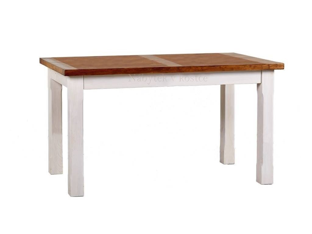Rustikální stůl SWEET HOME MES2 je vyroben z borovicového masivního dřeva (tloušťka nohou je 8cm, deska stolu 4cm) a ošetřen bílou vodou ředitelnou barvou. Horní hnědá deska je ošetřena lakem v odstínu světle hnědá medová.