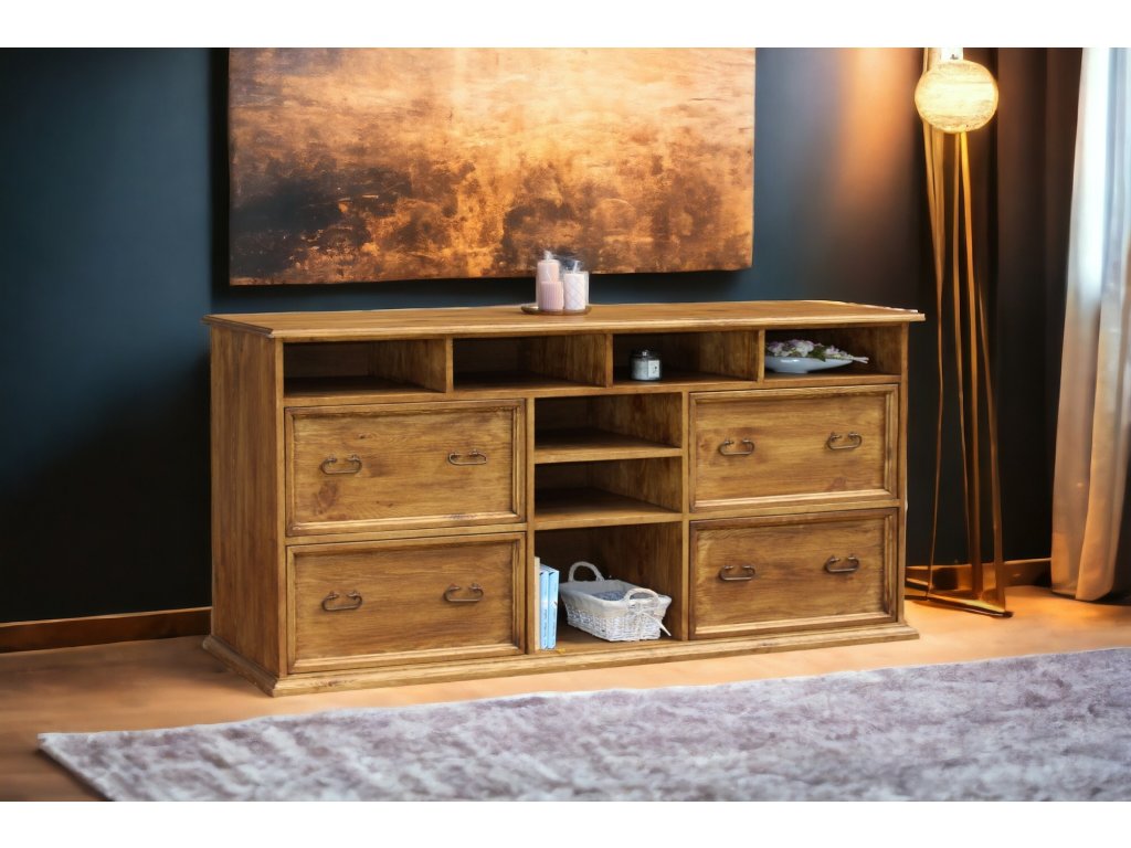 Masivní komoda MEXICANA je originální a velmi stylová komoda ve španělském stylu, která se stane výrazným prvkem v interiéru pracovny, jídelny i obývacího pokoje. Tento jedinečný nábytek přináší do každého interiéru atmosféru elegance a rustikálního šarmu, čímž zaujme nejen svým vzhledem, ale i praktičností.