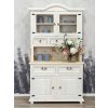 Dřevěný kredenc se skládá ze dvou částí. První (horní) část - voskovaný příborník či vitrína, má dvoje prosklené dveře, za nimiž se nabízí praktické police. Malé šuplíky určitě oceníte na uschovu drobností. Záda horní části je vyrobena rovněž ze dřeva.