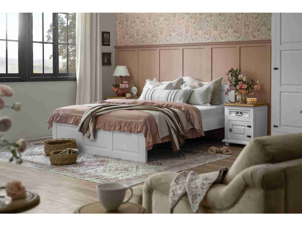 Rustikální postel WHITE HOME ACC 04, nábytek do ložnice ve stylu Provence.