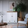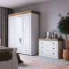 Rustikální prádelník TOSKANIA z masivu je vyrobena z masivní finské borovice a ošetřena bílou vodou ředitelnou barvou, která rozjasní jakékoliv interiéry vašeho domova. Horní deska je namořena do medového odstínu. Finská borovice vyniká svojí odolnosti a nádhernou dřevitou strukturou, kterou můžeme cítit, při každém doteku. Dna šuplíku a záda prádelníku jsou vyrobeny z dřevovláknité desky HDF.