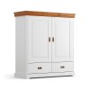 Rustikální prádelník TOSKANIA z masivu je vyrobena z masivní finské borovice v bílé barvě, která rozjasní každý interiér. Horní deska je namořena do medového odstínu.