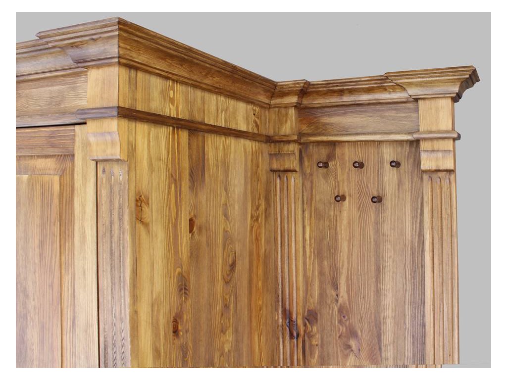 Rustikální předsíňová stěna SWEET HOME GAR-10 je vyrobena z masivního borovicového dřeva a ošetřena bílou vodou ředitelnou barvou. Hnědé části mohou být ošetřeny voskem anebo lakem.