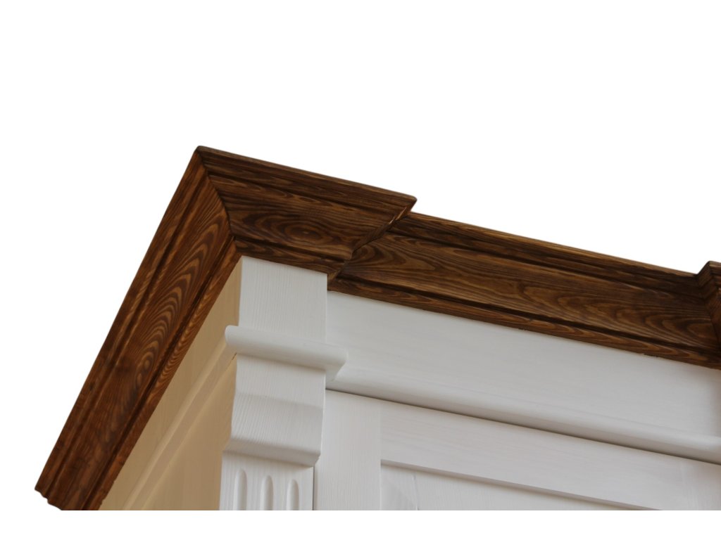 Rustikální skříň SWEET HOME je masivní skříň vyrobena z borovicového masivního dřeva (jen zadní stranu tvoří dřevěná dýha) a ošetřena bílou vodou ředitelnou barvou. Hnědé části mohou být ošetřeny voskem nebo lakem. Ze dřeva jsou rovněž vyrobeny i pojezdy na šuplíky a police. Skříň lze zakoupit i jako jednodveřová i třídveřová. Pro snazší údržbu doporučujeme objednat nábytek s vrchní hnědou deskou v lakované verzi.