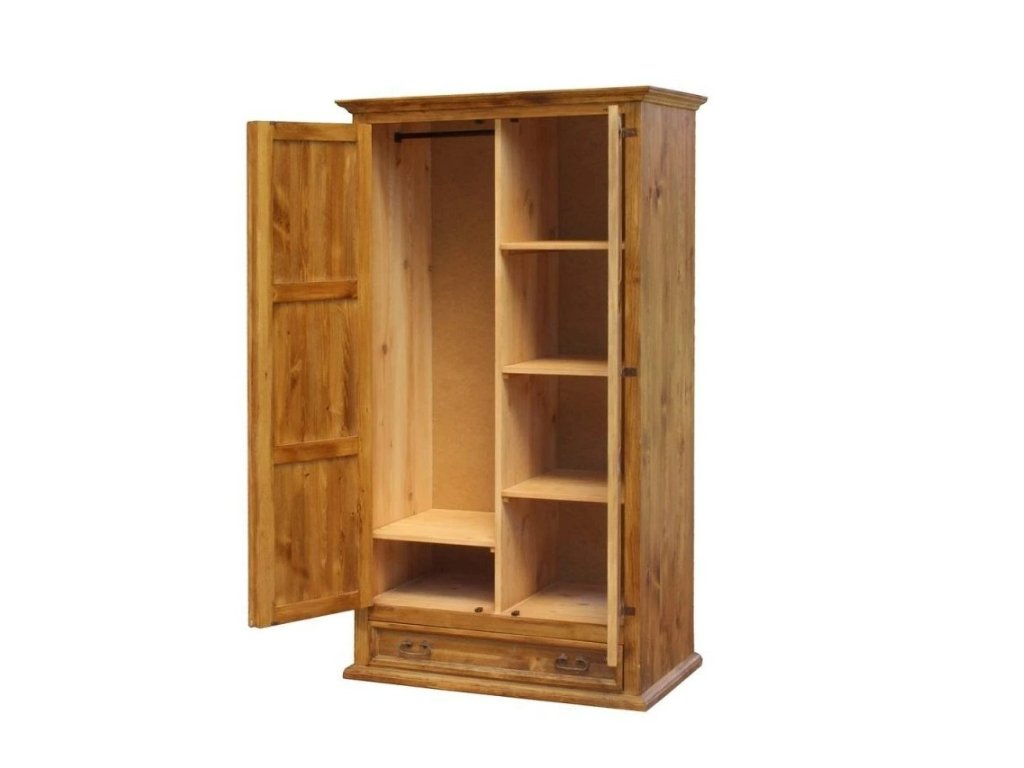 Rustikální skříň MEXICANA je celomasivní skříň vyrobena z borovicového masivního dřeva (jen zadní stranu tvoří dřevěná dýha). Ošetřena je voskem nebo lakem v barevné kombinaci dle vzorníku (vosk světle hnědý-medový, ořech, kaštan, dub tmavý, dub kouřový anebo vosk bezbarvý). Ze dřeva jsou rovněž vyrobeny i pojezdy na šuplíky a police. Skříň lze zakoupit i jako jednodvéřová i třídvéřová. Vnitřní prostory skříně nejsou ošetřeny voskem, jsou ošetřeny pouze bezbarvým nátěrem tak, aby co nejvíce vynikla krása přírodního dřeva.