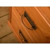 Rustikální skříň TOSKANIA z masivu je vyrobena z masivní finské borovice a namořen do teplého medového odstínu, které daruje interiérům hřejivé kouzlo domova. Finská borovice vyniká svojí odolnosti a nádhernou dřevitou strukturou, kterou můžeme cítit, při každém doteku. Dna šuplíku a záda skříně jsou vyrobeny z dřevovláknité desky HDF.