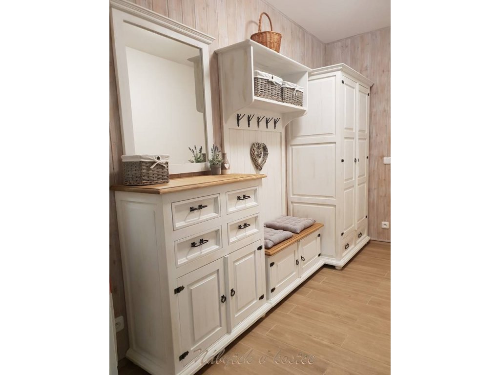 Rustikální šatní skříň WHITE HOME je určena všem, kteří hledají pro své interiéry nábytek ve stylu Provence, retro nábytek, bílý venkovský a vesnický nábytek či selský nábytek.