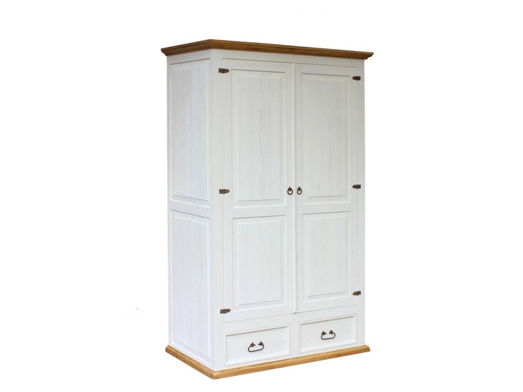 Rustikální skříň z masivu SWEET HOME de luxe dopřeje pohodlné uložení všem Vašim svrškům. Ve skříni na Vaše oděvy čeká šatní tyč, police v horní části a dva prostorné šuplíky.