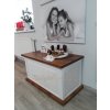Rustikální truhla SWEET HOME patří  mezi  populární  produkt našich  stálých  zákazníku. Truhla je vyrobena z borovice a ošetřena bílou vodou ředitelnou barvou. Horní hnědé plochy mohou být ošetřeny voskem anebo lakem. Pro snazší údržbu doporučujeme objednat nábytek s vrchní hnědou deskou v lakované verzi.