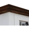 Rustikální vitrína SWEET HOME je vyrobená z borovicového masivního dřeva a ošetřena bílou vodou ředitelnou barvou anebo v bílo-hnědé barevné kombinaci. Hnědé plochy mohou být ošetřeny voskem anebo lakem. Ze dřeva jsou rovněž vyrobeny i pojezdy na šuplíky a zadní část, díky čemuž působí vitrína opravdu luxusně a stylově.