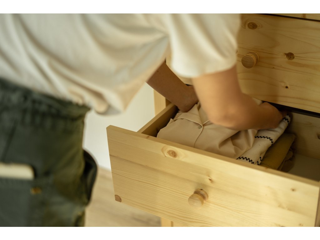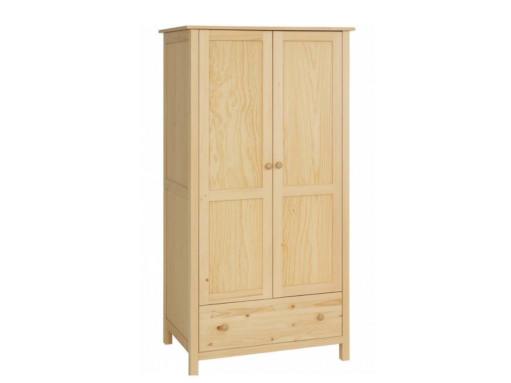 Masivní šatní skříň NATUR je dřevěná skříň se šatní tyčí ideální do interiéru vaší ložnice, studentského pokoje anebo dětského pokoje. Poslouží dokonale jako úložný prostor pro vaše oblečení, díky šatní tyči, schované za dvojicí dveří a prostorné zásuvky na celou šířku skříně. Tato kráska je prostorná, praktická a elegantní. Zachováním její přirozené barvy a jedinečnosti každého kusu dřeva z ní dělá opravdu nadčasový kousek a stylový kousek nábytku.