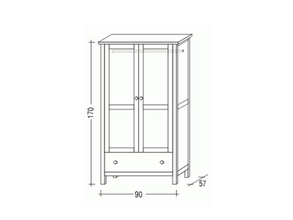 Rozměry: šířka 90 cm, výška 171 cm, hloubka 57 cm