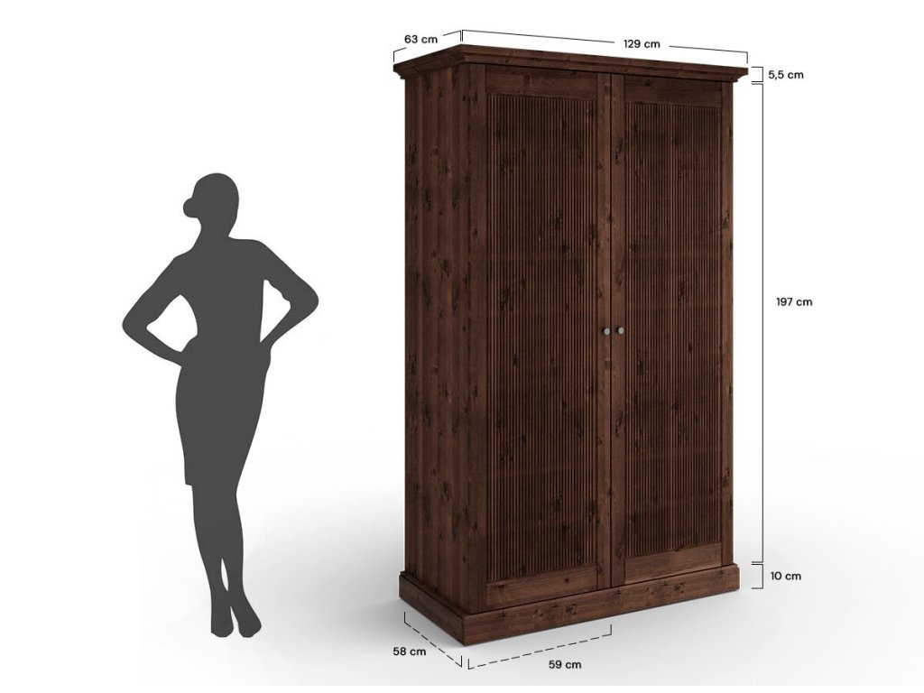 Skříň ROSITA 1 dvoudveřová je mořena do teplého odstínu tabáku, který krásně zvýrazňuje strukturu dřeva a ladí s přírodním a provensálským stylem bydlení, hodí se skvěle do ložnice, kde navodí poklidnou a příjemnou atmosféru francouzského venkova.