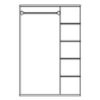 Šatní skříň DEJA8 nabízí velký prostor na pohodlné uložení oděvů. Tato skříň je tří dveřová. Větší část tvoří prostor s šatní tyčí, zbylou 1/3 tvoří poličky.