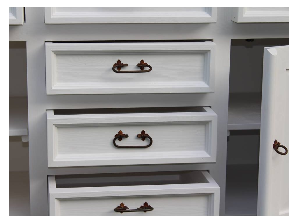 Rustikální skříň SWEET HOME je masivní skříň vyrobena z borovicového masivního dřeva (jen zadní stranu tvoří dřevěná dýha) a ošetřena bílou vodou ředitelnou barvou. Hnědé plochy jsou ošetřeny voskem. Ze dřeva jsou rovněž vyrobeny i pojezdy na šuplíky a police. Skříň lze zakoupit i jako jednodveřová i třídveřová. Tloušťka boků skříně - 4cm, sokl - 3cm, věnec - 4 cm, tloušťka dveří 2,5 cm, délka šuplíku - 44,5 cm, vnitřní délka šuplíku 40,5 cm, hloubka šuplíků 13 cm. Prostor mezi policemi činí 39 cm, jen meziprostor mezi horní policí činí 45 cm.