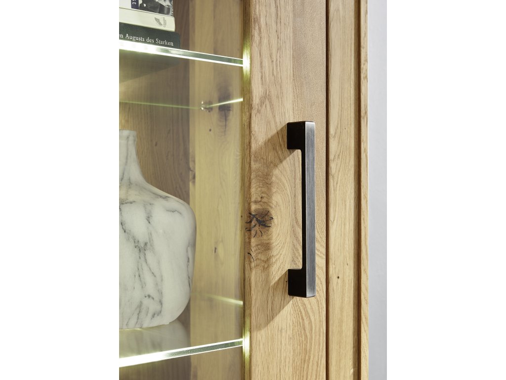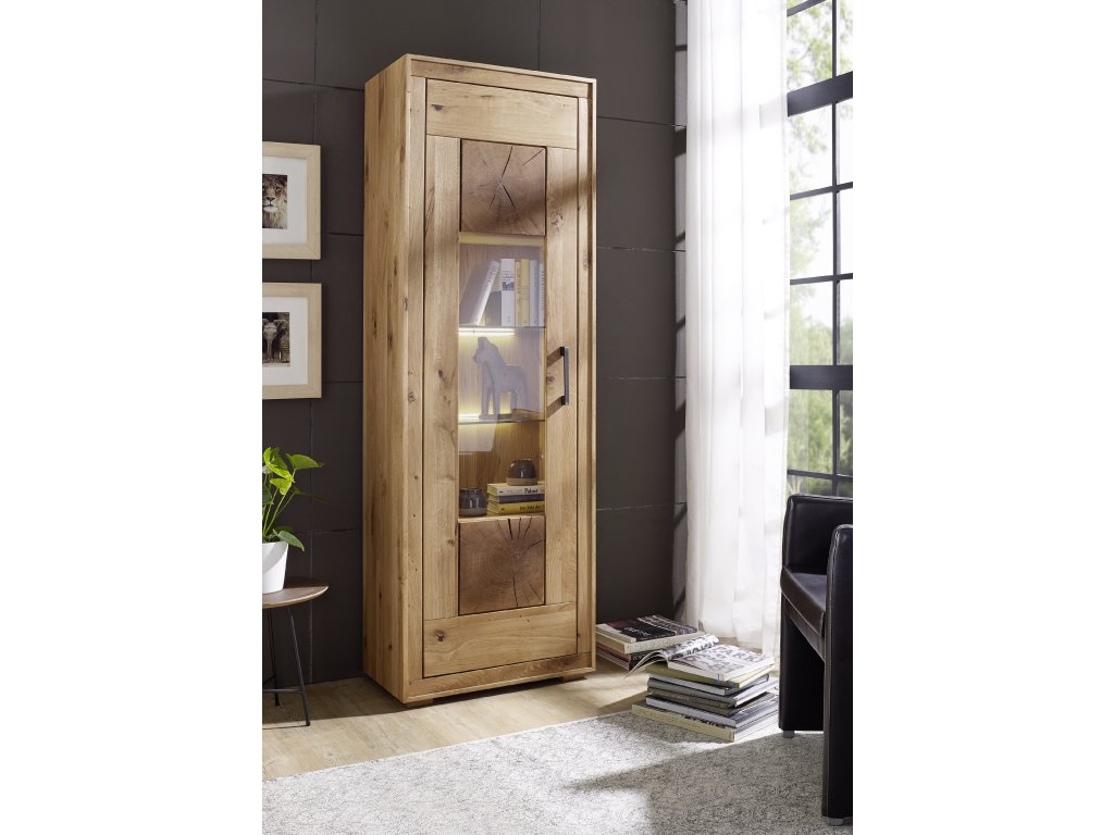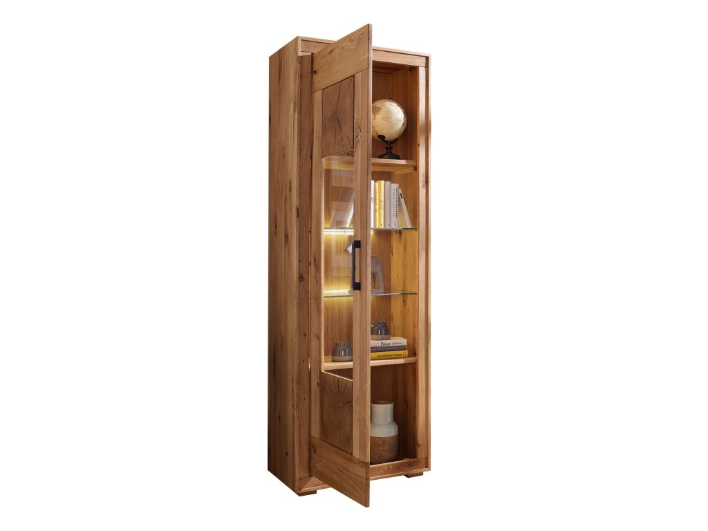 Skleněná vitrína MANDALA je stylová vitrína, vhodná do Vaší kuchyně, jídelny nebo obývacího pokoje. Vitrína je vyrobena z masivního dubového dřeva se skleněnými dvířky. Výběr tohoto materiálu zajišťuje, že se jedná o produkt špičkové kvality a nábytek má jedinečný vzhled díky svému provedení z masivního dřeva. Povrch nábytku je ošetřen čirým olejem.