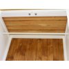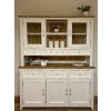 Masivní skříň PROVENCE je vyrobená z masivního bukového dřeva a ošetřená akrylovou barvou v krémovém odstínu. Vrchní deska je vyrobená z masivního dubového dřeva a ošetřená lakem.