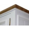 Masivní skříň PROVENCE je vyrobená z masivního bukového dřeva a ošetřená akrylovou barvou v krémovém odstínu. Vrchní deska je vyrobená z masivního dubového dřeva a ošetřená lakem.