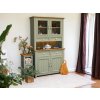 Masivní skříň PROVENCE je vyrobená z masivního bukového dřeva a ošetřená akrylovou barvou v olivovém odstínu. Vrchní deska je vyrobená z masivního dubového dřeva a ošetřená lakem.