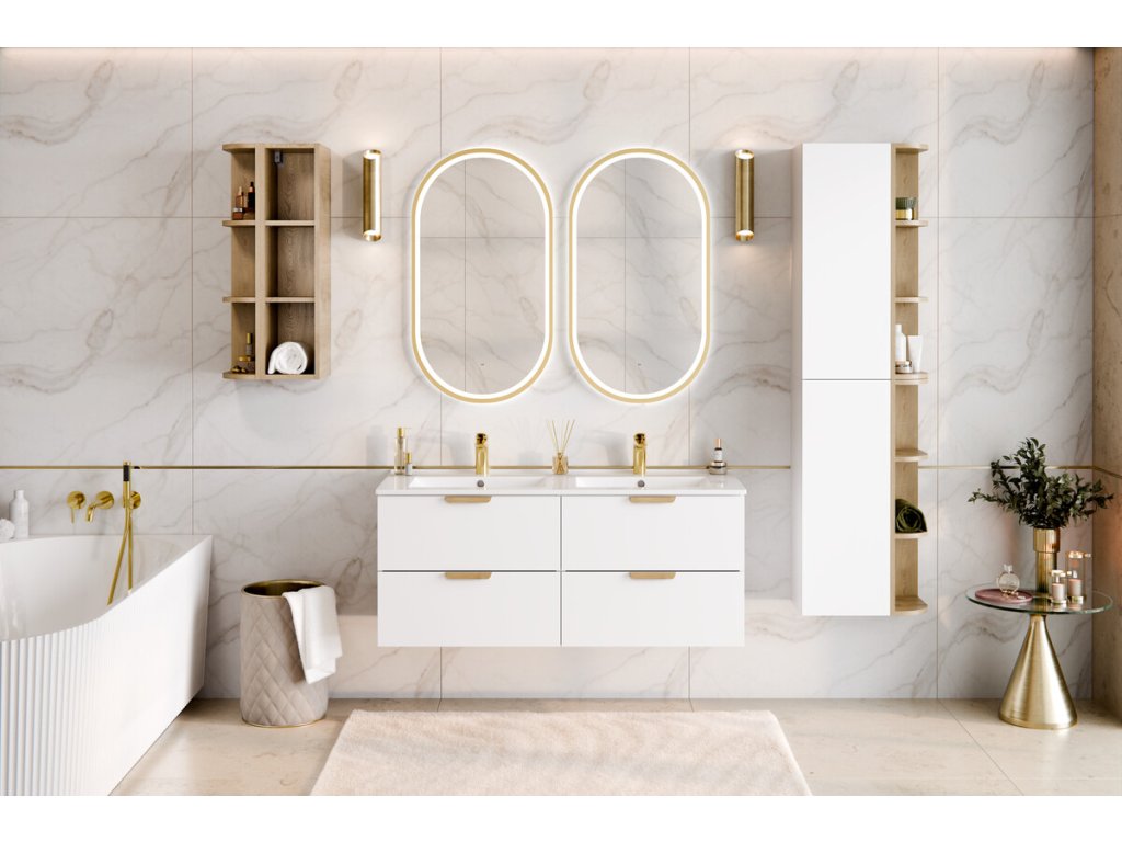 Dvě prostorné zásuvky poskytují dostatek místa pro uložení koupelnových doplňků a pomáhají udržet každodenní pořádek. Díky hloubce 46 cm a výšce 50 cm skříňka kombinuje praktičnost s lehkým vzhledem – její promyšlené proporce opticky odlehčují prostor, aniž by ubíraly na úložné kapacitě. Komfort při používání navíc zvyšuje systém tichého dovírání.