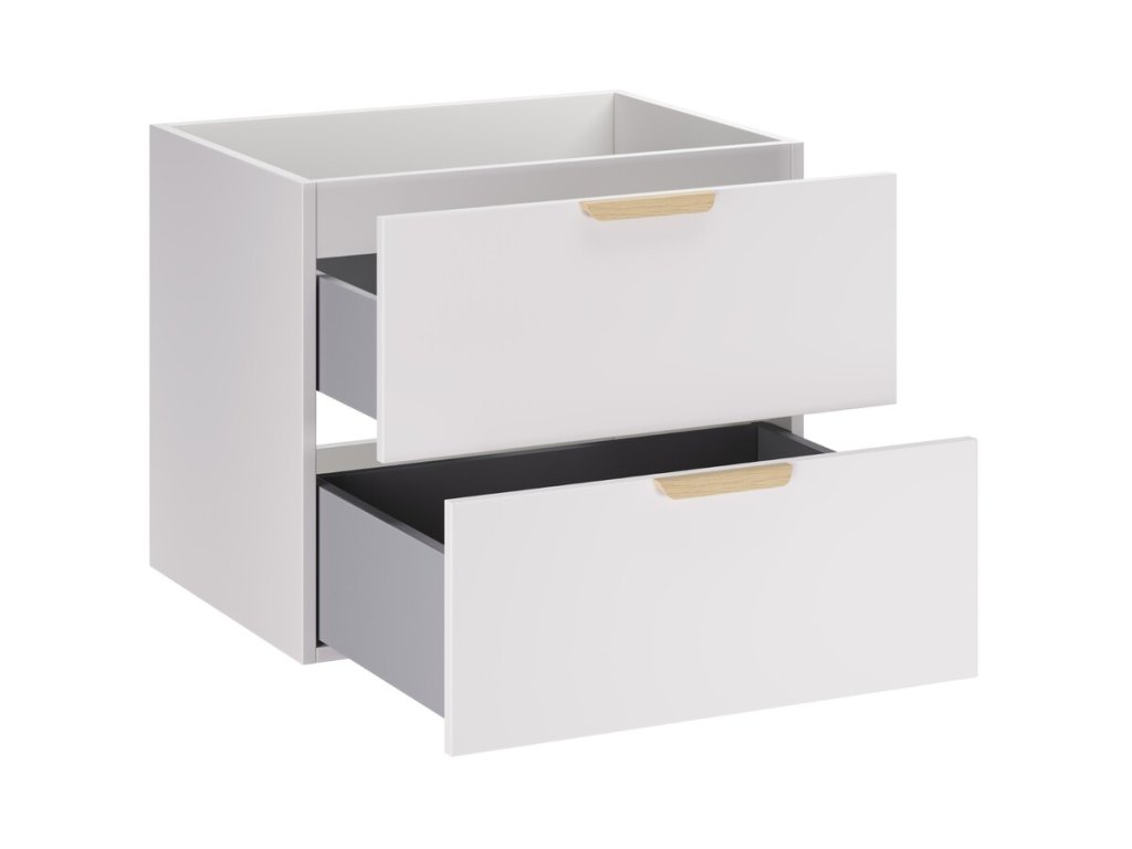 Dvě prostorné zásuvky poskytují dostatek místa pro uložení koupelnových doplňků a pomáhají udržet každodenní pořádek. Díky hloubce 46 cm a výšce 50 cm skříňka kombinuje praktičnost s lehkým vzhledem – její promyšlené proporce opticky odlehčují prostor, aniž by ubíraly na úložné kapacitě. Komfort při používání navíc zvyšuje systém tichého dovírání.
