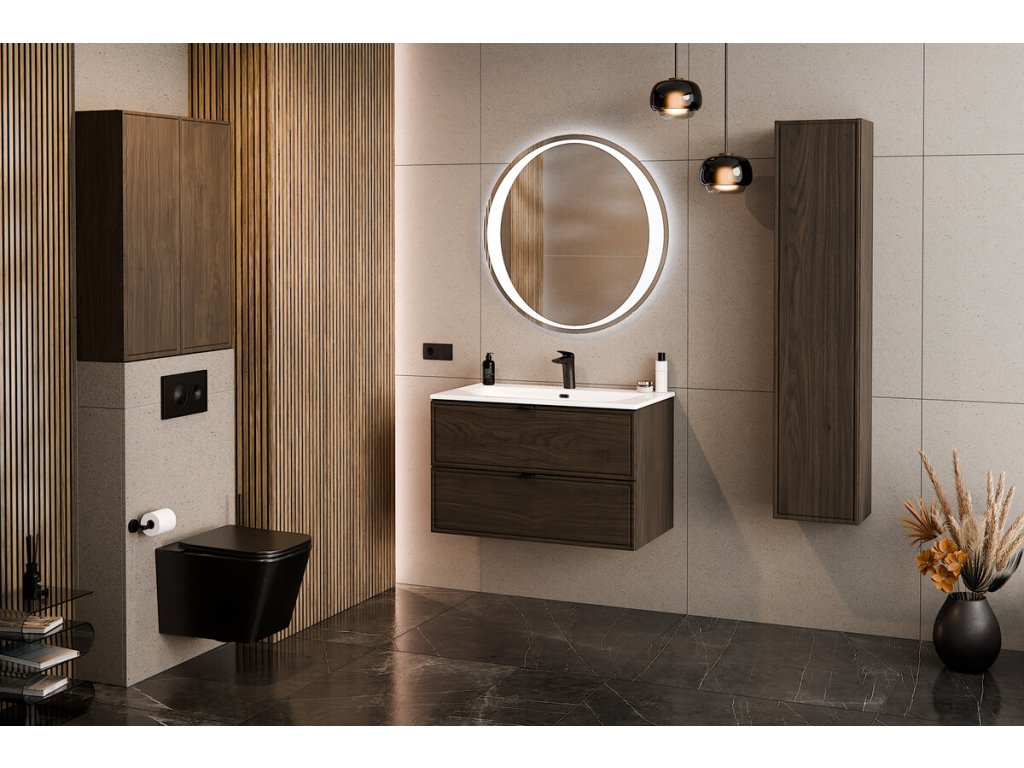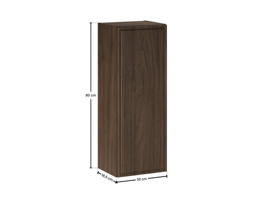 Jednodveřová skříňka do koupelny z kolekce Terra Villa spojuje klasickou eleganci s moderním designem. Charakteristická čela s jemně frézovaným rámečkem působí nadčasově a dodávají nábytku sofistikovaný vzhled. Dekor v odstínu ořech zaujme hlubokým odstínem a přirozenou kresbou dřeva, která vnáší do interiéru teplo, klid a přirozenou eleganci.