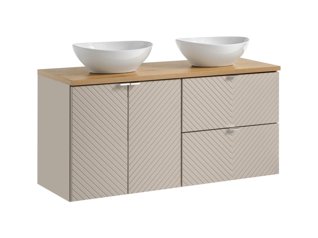 Skříňka do koupelny VIVA kašmír s deskou a umyvadly