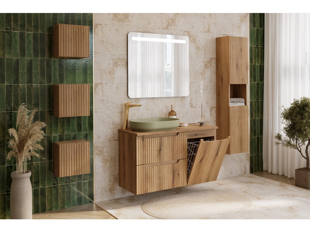 Skříňka pod desku o šířce 40 cm s integrovaným košem na prádlo z kolekce Nova Coast Evoke spojuje moderní design s praktickou funkčností. Elegantní minimalistický vzhled doplňují výrazná vertikální rýhovaná čela, která dodávají nábytku jedinečný charakter. Design podtrhuje také integrovaný podúchyt, jenž zachovává čisté linie a nadčasový styl celé kolekce.