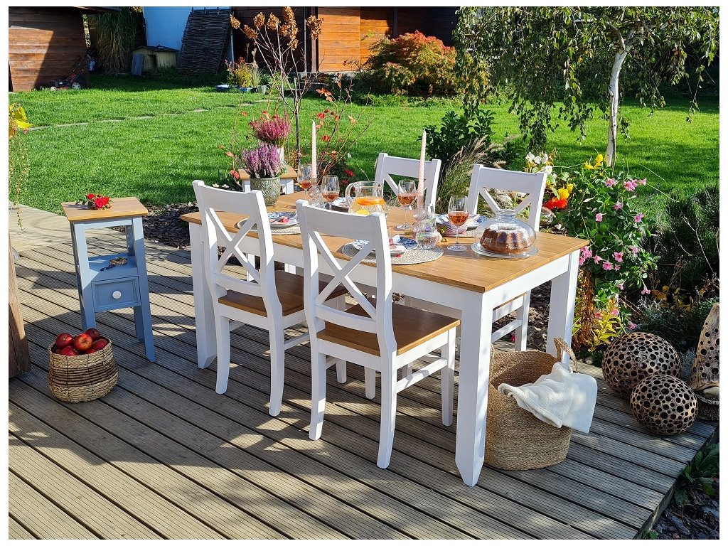 Kolekce PROVENCE to je stylový, vkusný a jemný nábytek v oblíbeném francouzském stylu. Nábytek PROVENCE je vyroben z masivního bukového dřeva a ošetřen akrylovou barvou v bílé či šedomodré barvě. Horní hnědé částí jsou vyrobeny z masivního dubového dřeva a ošetřeny lakem. Spojením těchto dvou materiálu jsme docílili opravdu velmi efektivního vzhledu, který hned tak nikdo nepřehlédne.