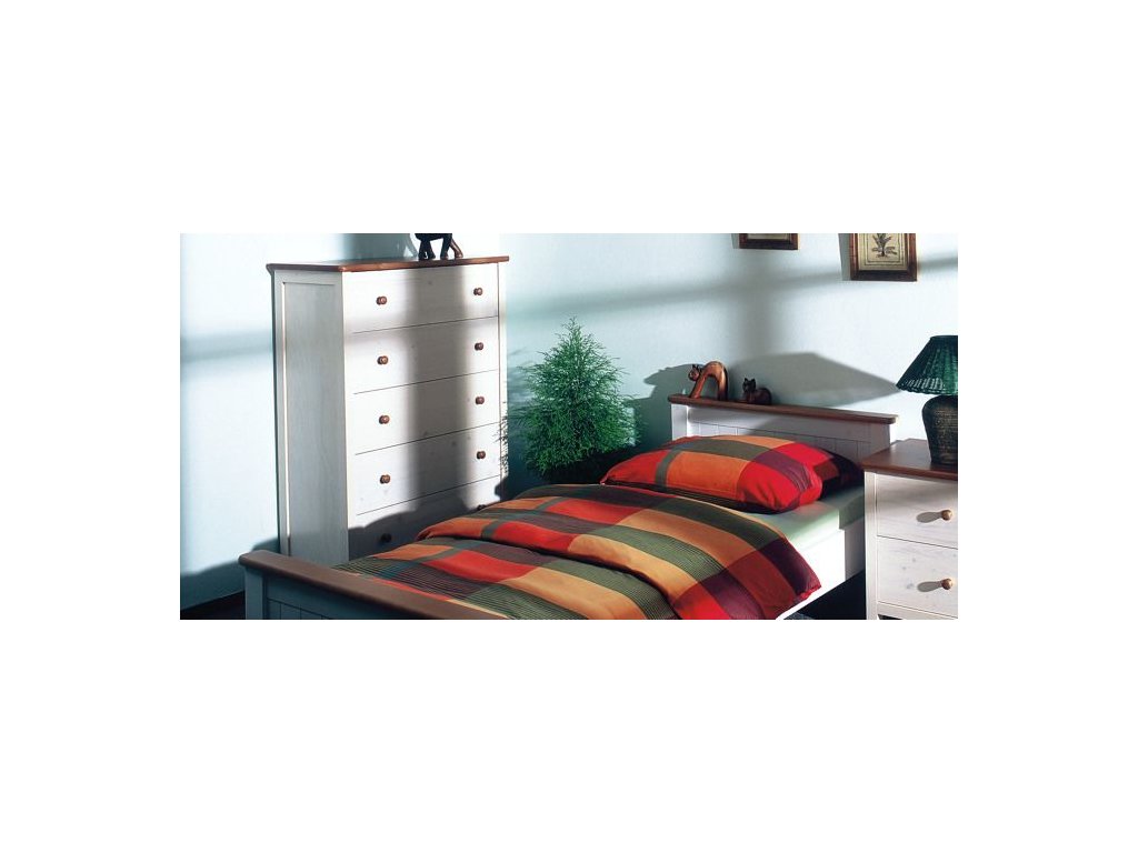 Komoda je součástí nábytkové kolekce Astra, která je typická svým výrazným provensálským stylem – bílým lakem se zřetelnou kresbou dřeva a tmavě hnědými horními deskami. Tato povrchová úprava zvýrazňuje přírodní charakter smrkového masivu a dodává nábytku hřejivý vzhled. Záda komody tvoří Sololak.