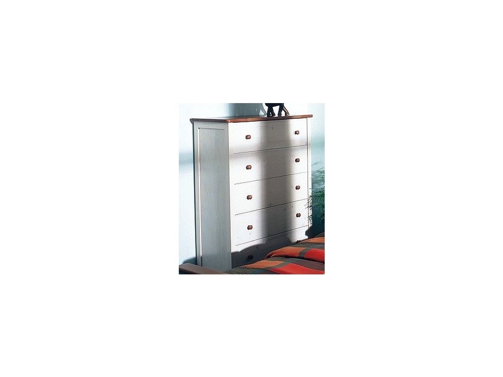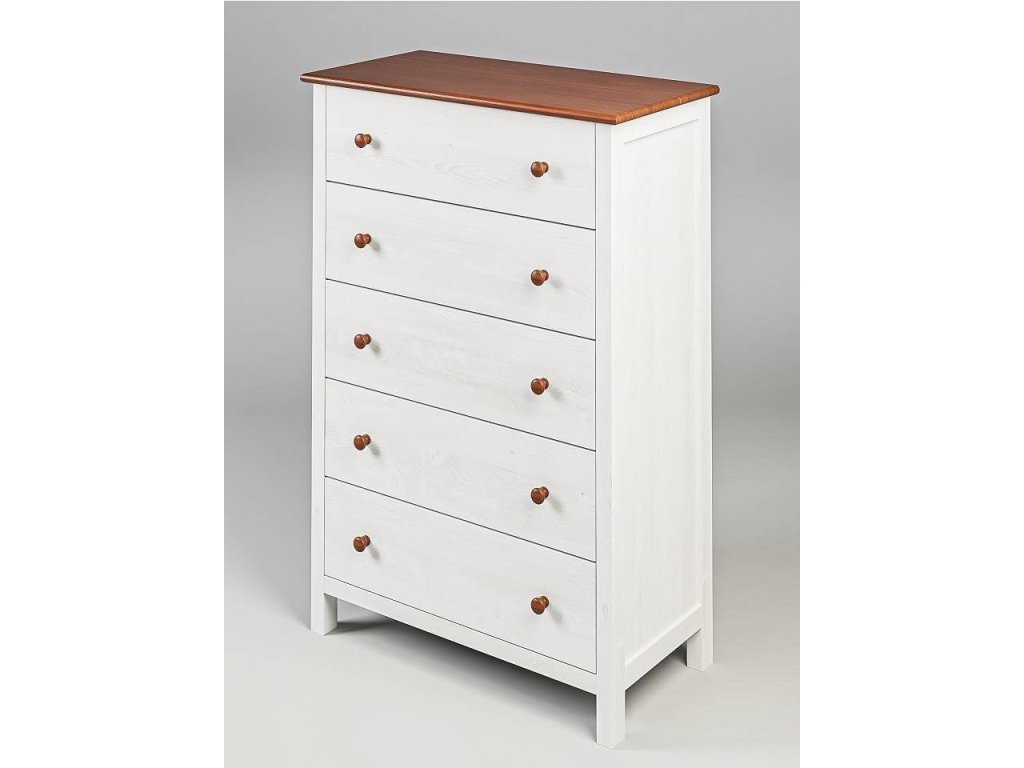 Šuplíková komoda Astra velká ze smrkového masivu nabízí pět zásuvek na kovových pojezdech. Kombinace bílé barvy a tmavé desky vytváří působivý provensálský styl.