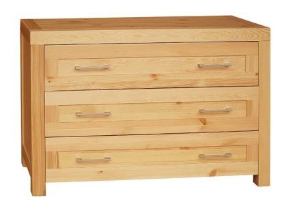Komoda z masivu DEJ56 je potřebná téměř v každé domácnosti. Je vyrobena ze 100% borovicového masívu. Pouze zadní část je tvořena ze sololitu. Výrobce klade důraz na použití minimálního množství suků.