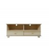 Televizní stolek DEJ86 se skládá ze 2 výsuvných šuplíků, které jsou uchyceny na kvalitních kovových pojezdech. V zadní části televizního stolku jsou kulaté otvory na kabely, takže se nemusíte trápit složitým vyřezáváním nebo schováváním kabelů. Úchytky jsou roztomile kulaté, rovněž z borovicového masívu. Celý televizní stolek je postaven na 4 kulatých nožkách.