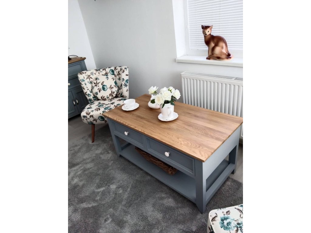 Nábytek kolekce PROVENCE je elegantní a vkusný nábytek v překrásném francouzském stylu. Nábytek je vyroben z velmi kvalitního bukového masivního dřeva a ošetřen akrylovou barvou v bílé, šedomodré, krémové a olivové barvě. Horní desky jsou vyrobeny z dubového masivního dřeva, které je ošetřeno lakem. Nábytek zvelebí veškerý interiér včetně obývacích pokojů, jídelen, ložnic a dalších místností Vašich domovů.