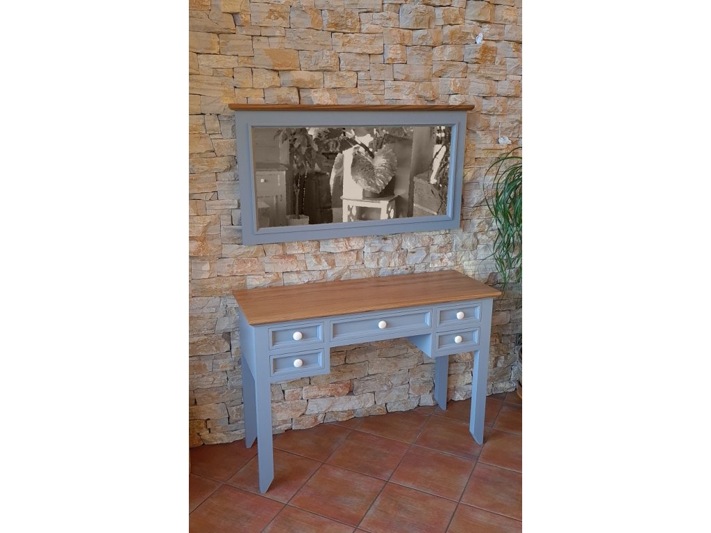 Toaletní stolek PROVENCE z masivu se zrcadlem šedomodrá