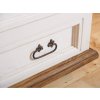 Vnitřní prostory rustikální skříň SWEET HOME obsahuje z 2/3 police a v pravé části šatní tyč. Spodní část tvoří 3 výsuvné šuplíky. Stylové úchyty v retro stylu s efektem patiny dodávají skříni nadčasovou eleganci.