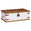 Masivní truhla COM02 z kolekce SWEET HOME osloví ty, kteří mají rádi venkov. Venkovský styl v kombinaci bílé a hnědé barvy dává nezapomenutelnou atmosféru starých časů. Truhla je ideální také jako odkládací box. Rustikální design podtrhují klasické linie, ozdobné kování po stranách. Masivní truhla je vyrobena z borovice a ošetřena bílou vodou ředitelnou barvou. Hnědé plochy mohou být ošetřeny voskem nebo lakem.