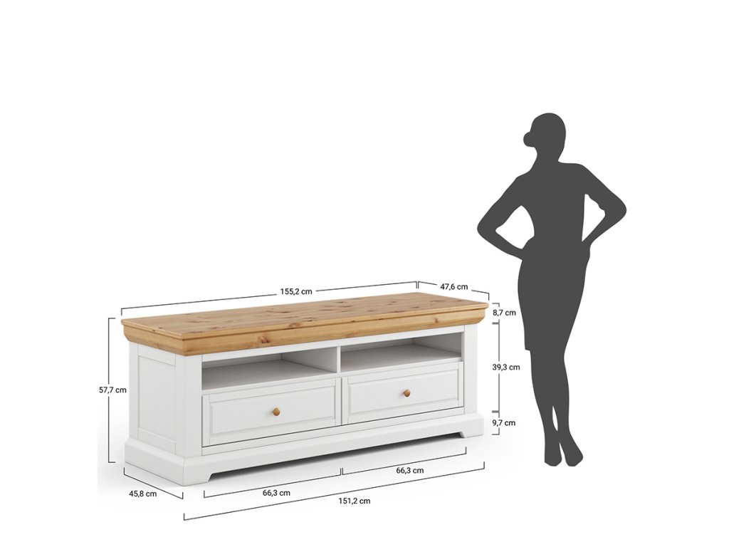 TV stolek z borovicového masivu krásně doplní obývací pokoj laděný do venkovského nebo provence stylu, ale zároveň nabídne praktické řešení pro uložení všeho, co chcete mít při sledování televize po ruce.