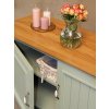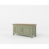 Masivní TV stolek PROVENCE je vyrobený z masivního bukového dřeva a ošetřený akrylovou barvou v olivovém odstínu. Vrchní deska je vyrobená z masivního dubového dřeva a ošetřená lakem.