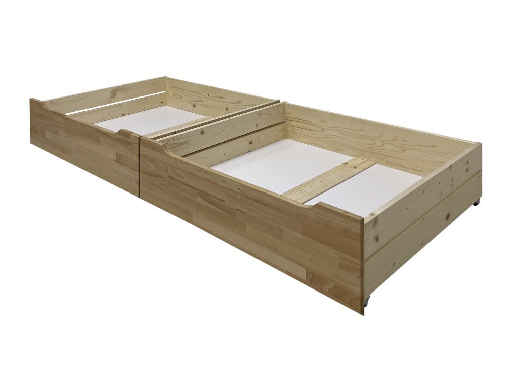 Masivní úložné boxy THOMAS se spolehlivě postarají o vaše nezbytnosti. Tyto velmi vkusné a praktické zásuvky pod postel jsou vyrobeny z bukového masivu, a jakožto úložný prostor pod postel nejlépe ladí s postelemi THOMAS - 90x200 cm. Tato dokonalá dvojice hravě rozjasní nejen dětský pokoj, ale i studentský pokoj, a vy tak můžete vstávat do nového dne s tím správným naladěním, obklopeni příjemnou vůní přírodního dřeva.