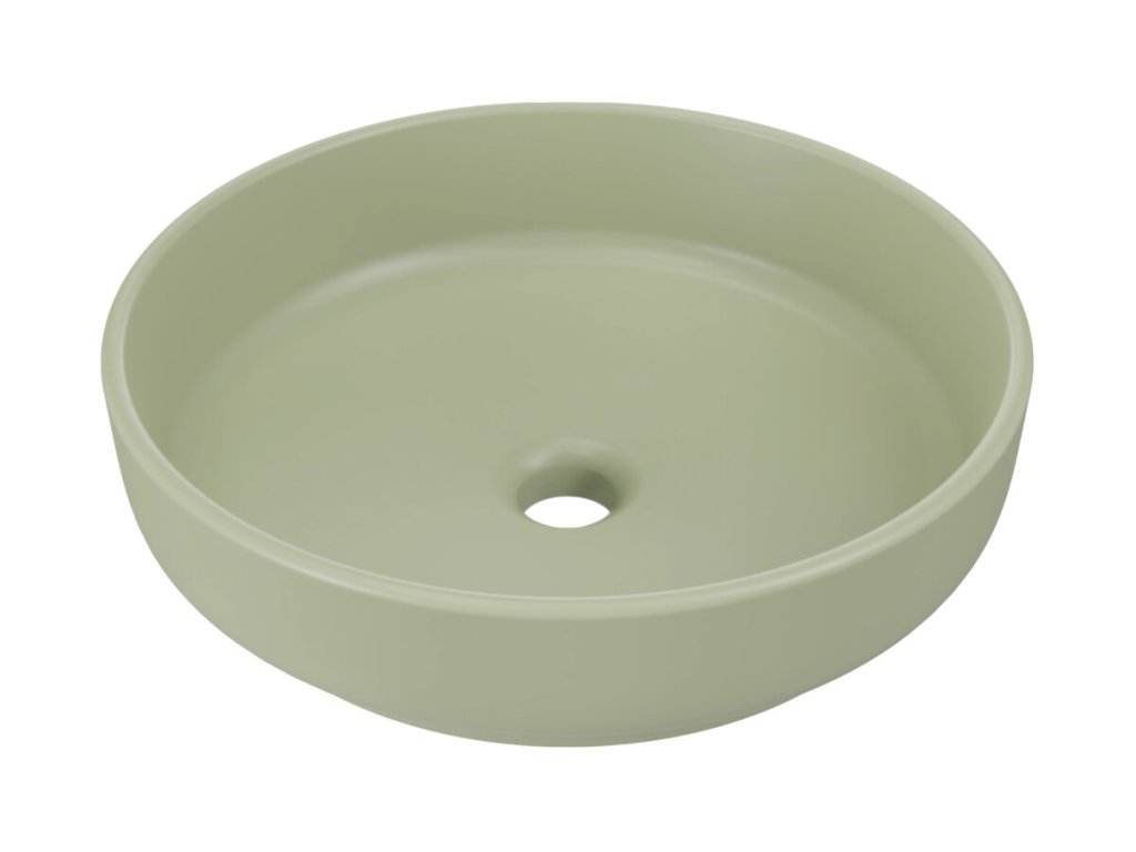 Nábytkové umyvadlo River 1 – Olive Green je elegantní kulaté umyvadlo s matným povrchem v jemné olivově zelené barvě. Díky rozměrům 40 × 40 cm a výšce 12 cm je praktickým doplňkem pro moderní i kontrastní koupelnové interiéry.