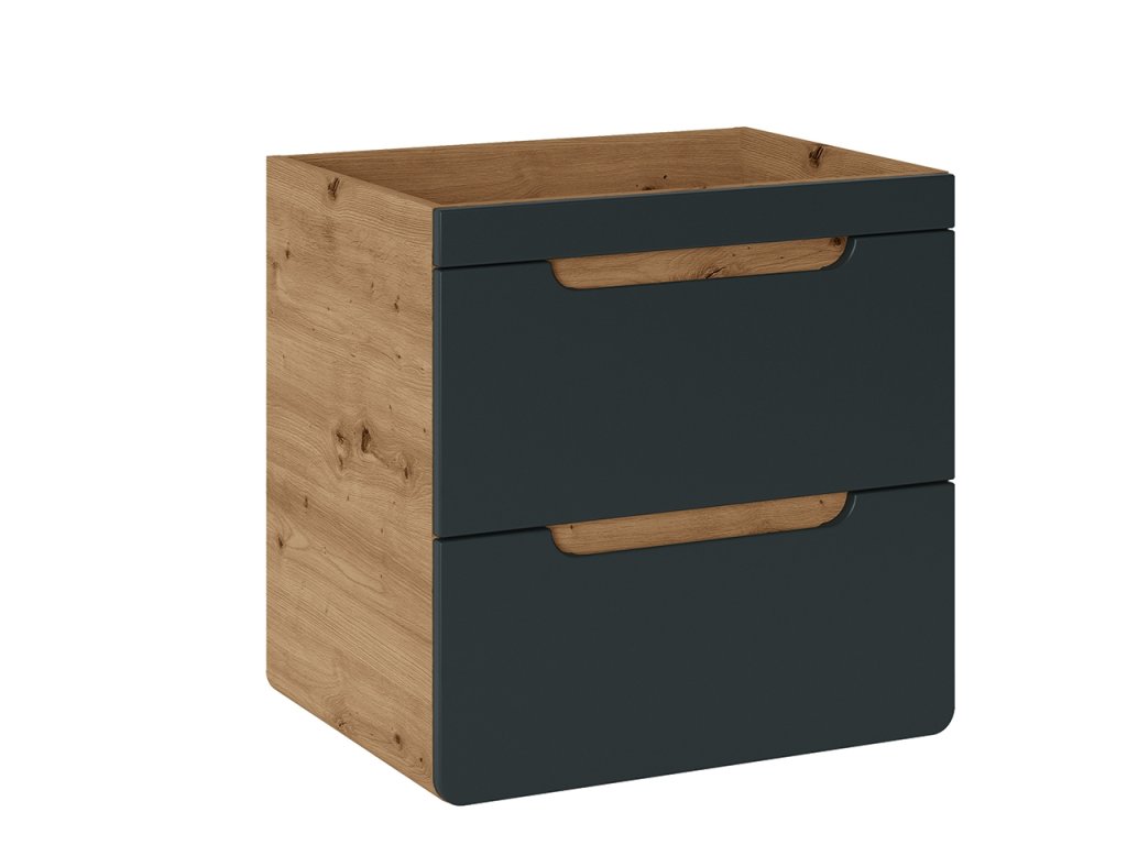 Umyvadlová skříňka Aruba Cosmos je kvalitní dřevěná skříňka určená pro umístění zápustného umyvadla. Skříňka disponuje dvěma šuplíky s bezúchytkovými čely a tichým dojezdem. Korpus skříňky je vyroben v dekoru zlatého dubu, přičemž dvířka jsou v kontrastní matné černé barvě.