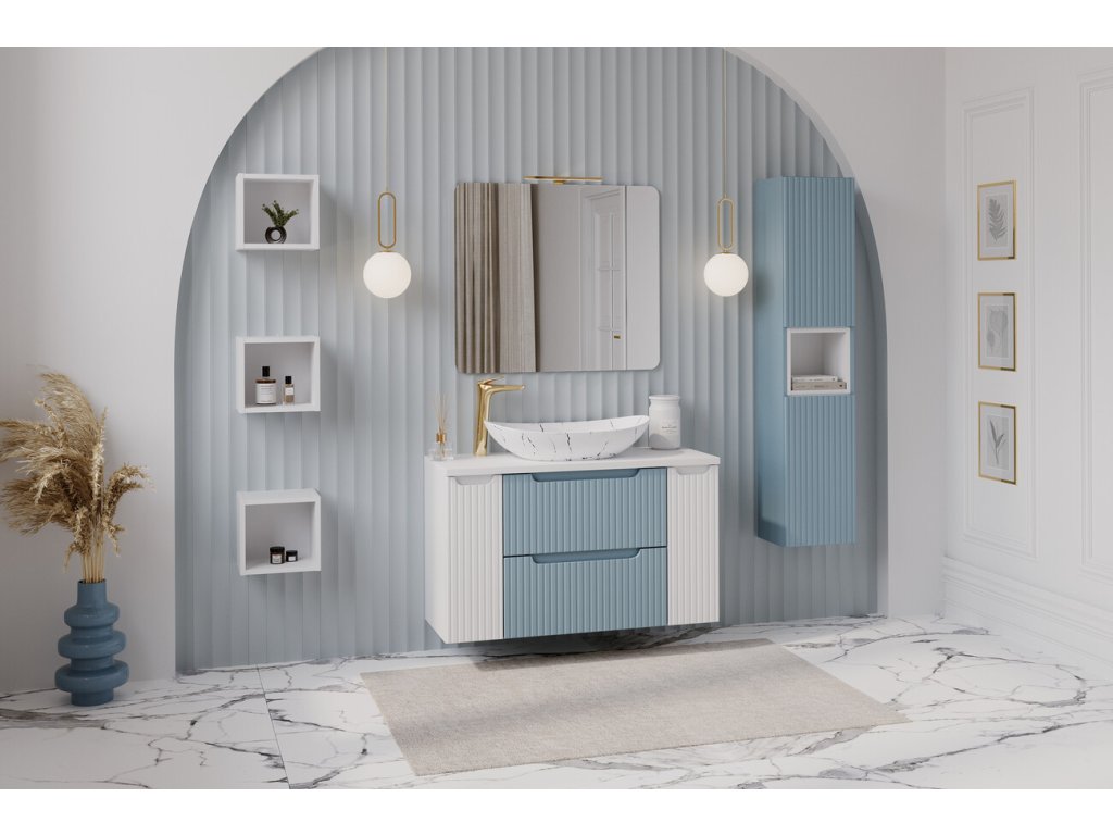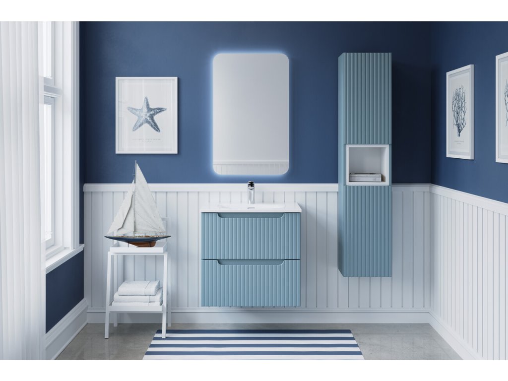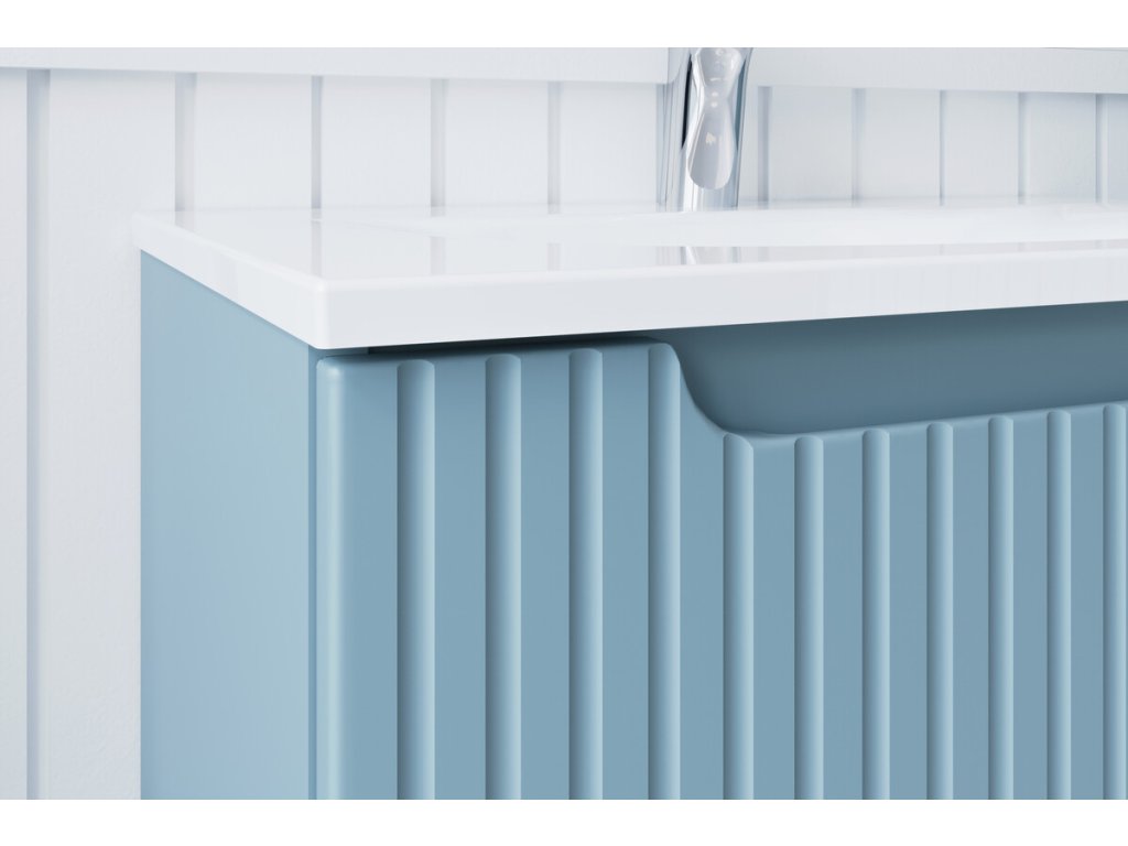 Skříňka pod umyvadlo o šířce 60 cm z kolekce Nova Denim zaujme elegantním minimalistickým designem a výraznými vertikálními rýhovanými čely, která dodávají nábytku moderní a nadčasový charakter. Design doplňuje integrovaný úchyt, jenž působí nenápadně a zároveň podtrhuje čisté linie nábytku.