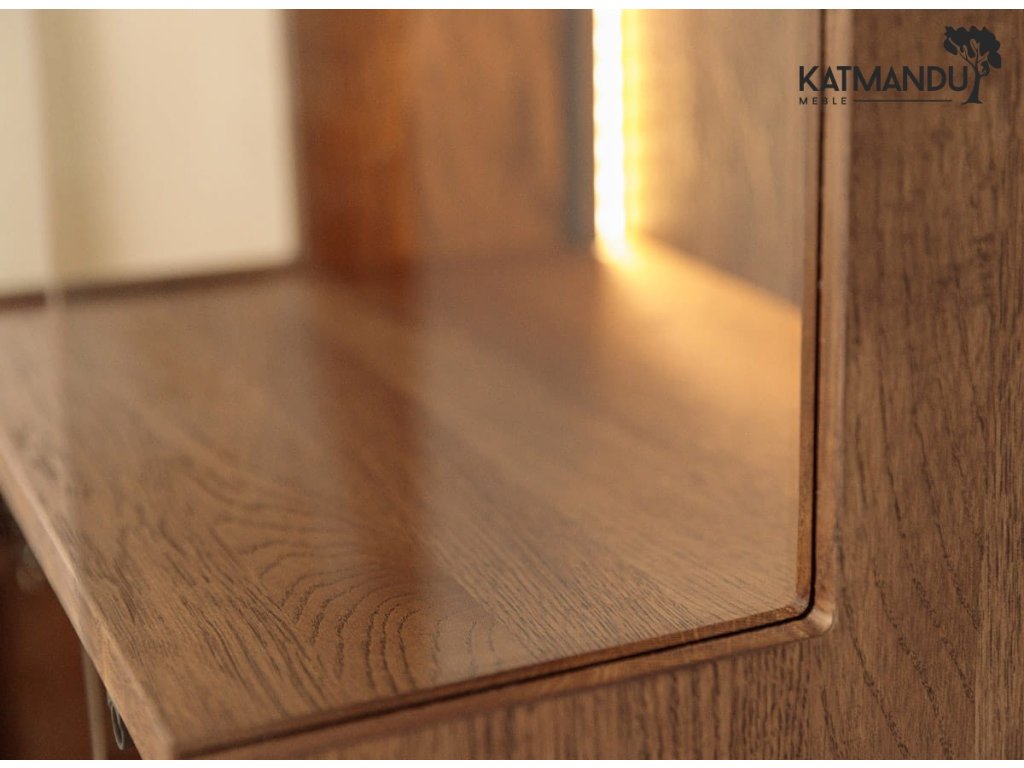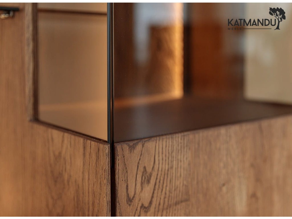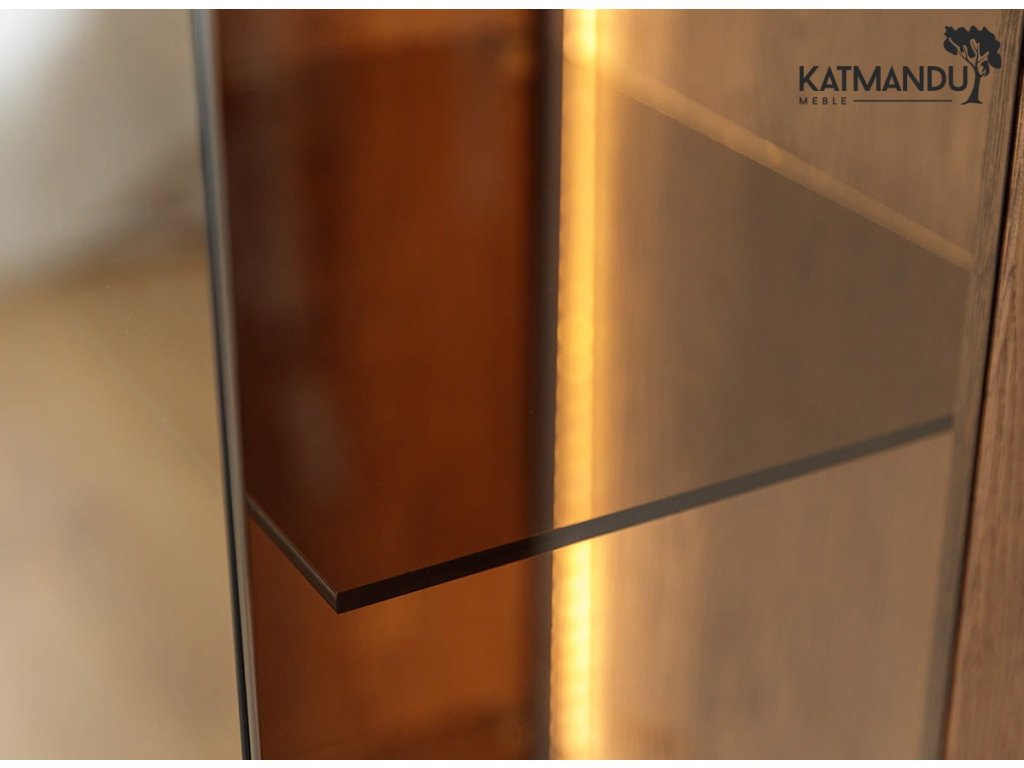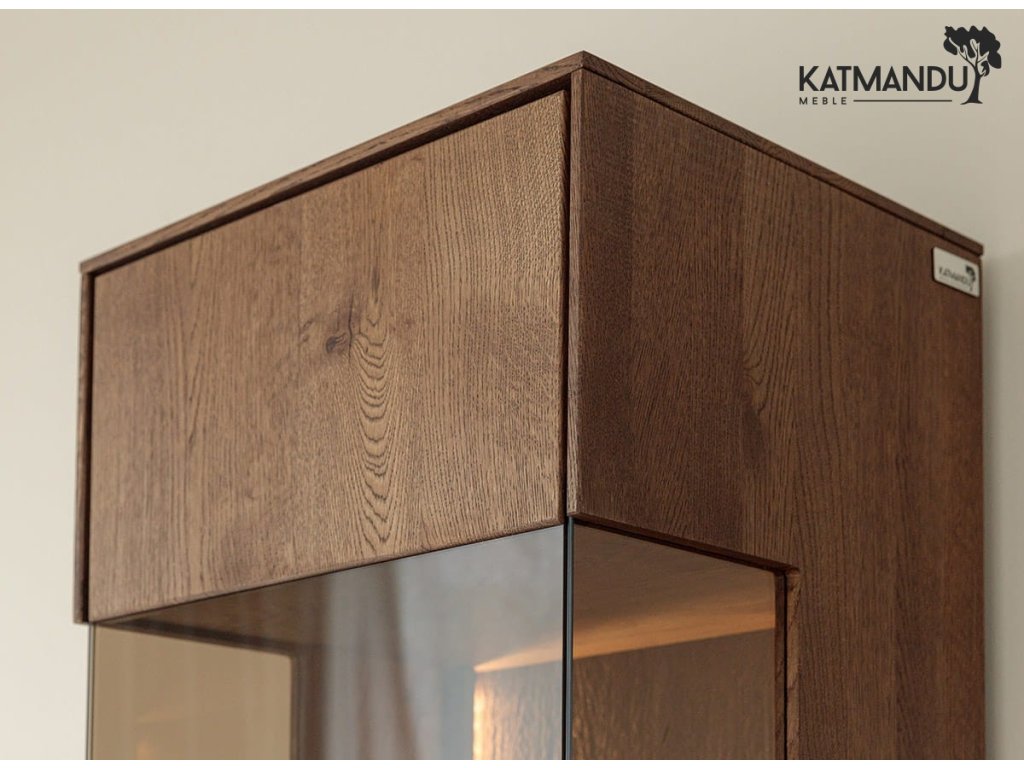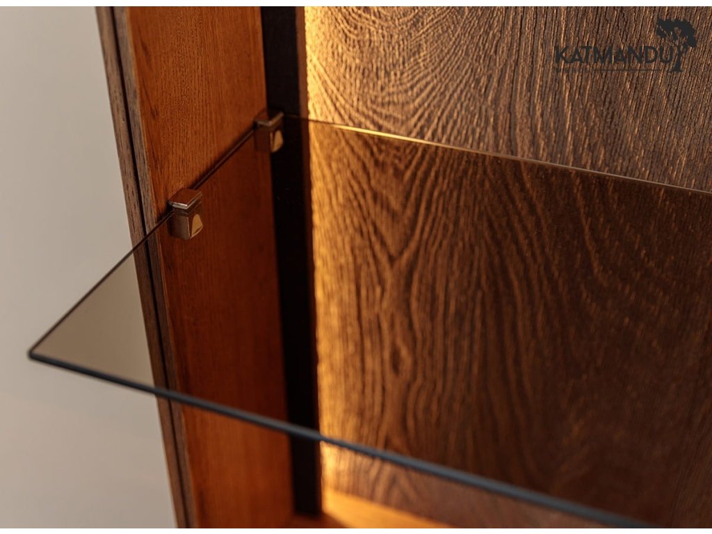 Dubová vitrína SALVATORE Tabaco z masivu s osvětlením pravá