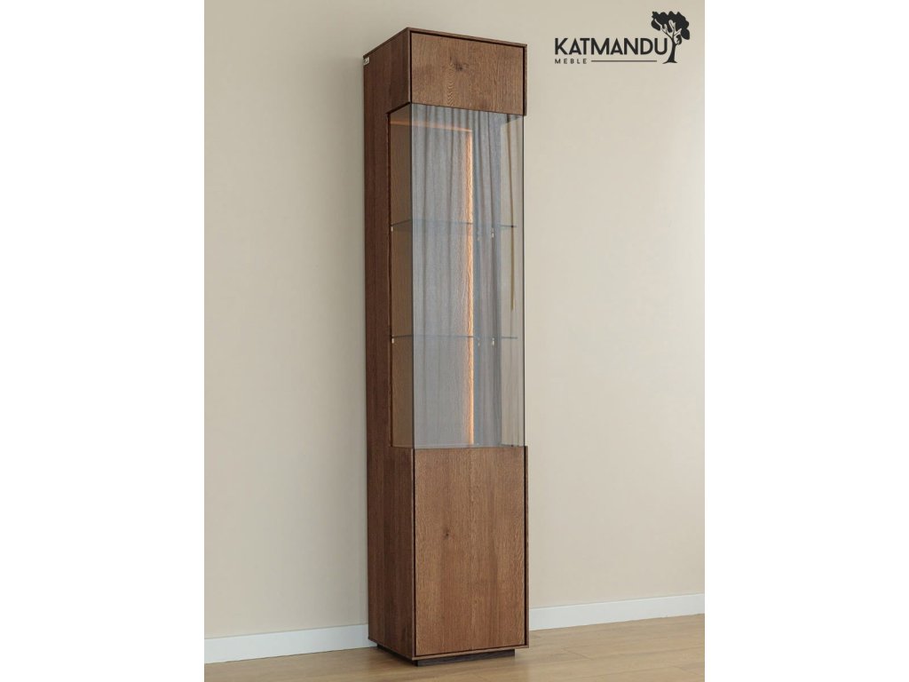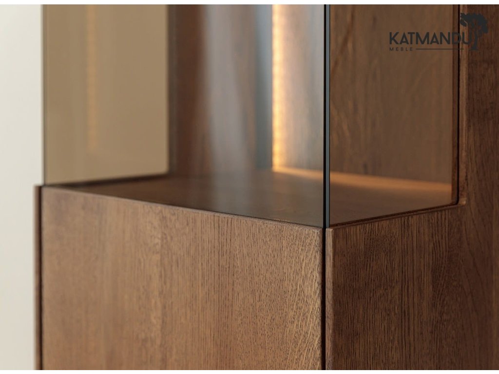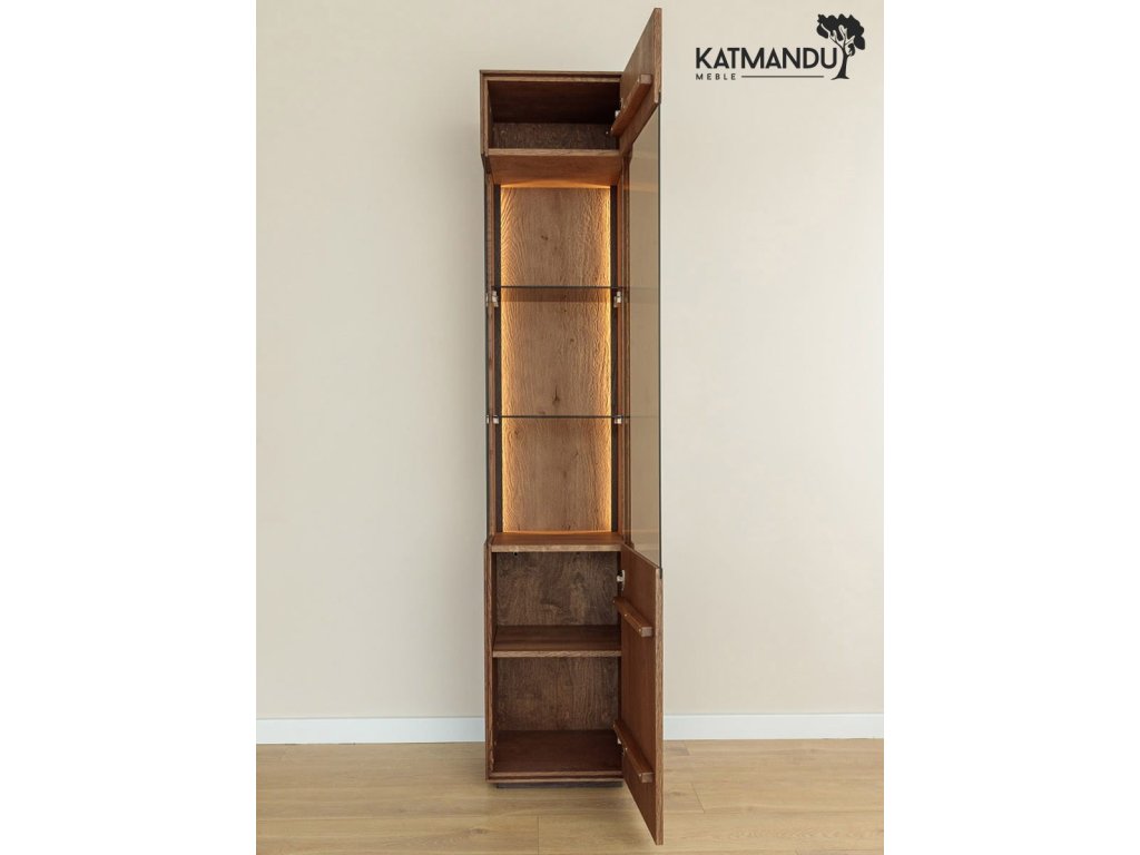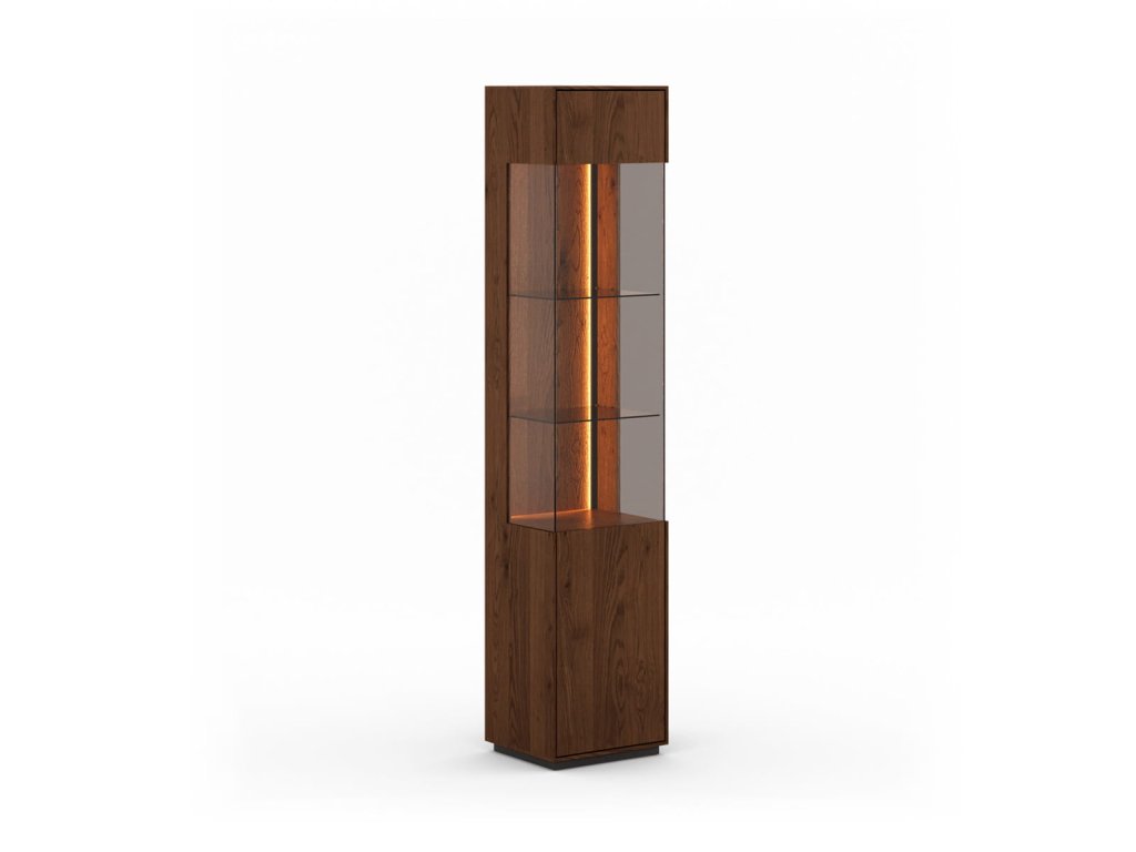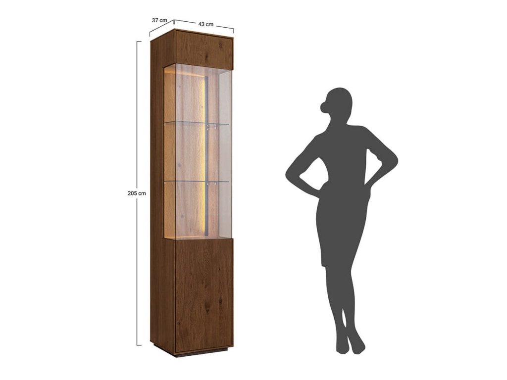 Úzká dubová vitrína SALVATORE Tabaco s osvětlením pravá